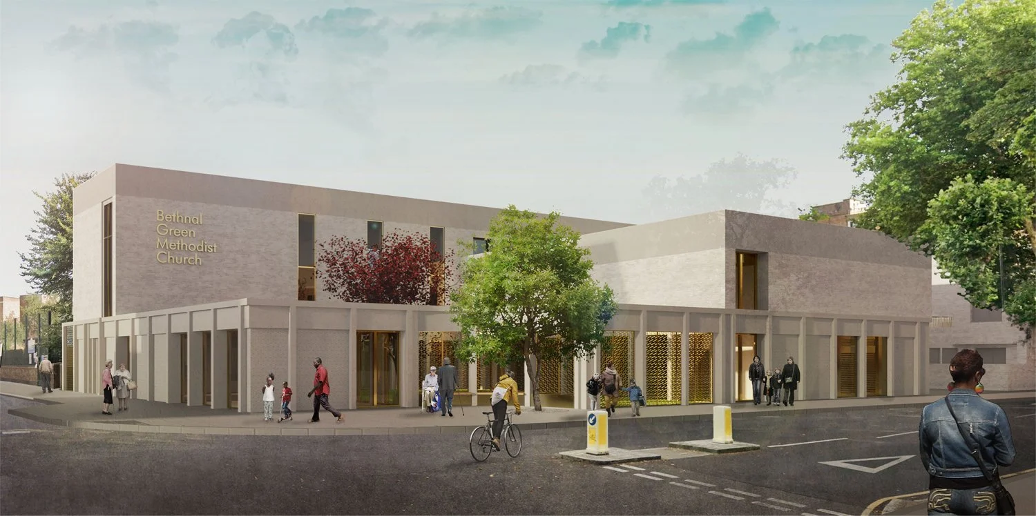 The current site, in the Victoria Park Conservation Area, consists of a 1950s church, hall and manse in poor repair. The existing buildings are no longer able to successfully facilitate the activities of the Methodist Church in Tower Hamlets and the Zaccheus Project, a twinned charity which works with older people and carers, offering advice, support and activities to improve the quality of their lives and address gaps in local provision.