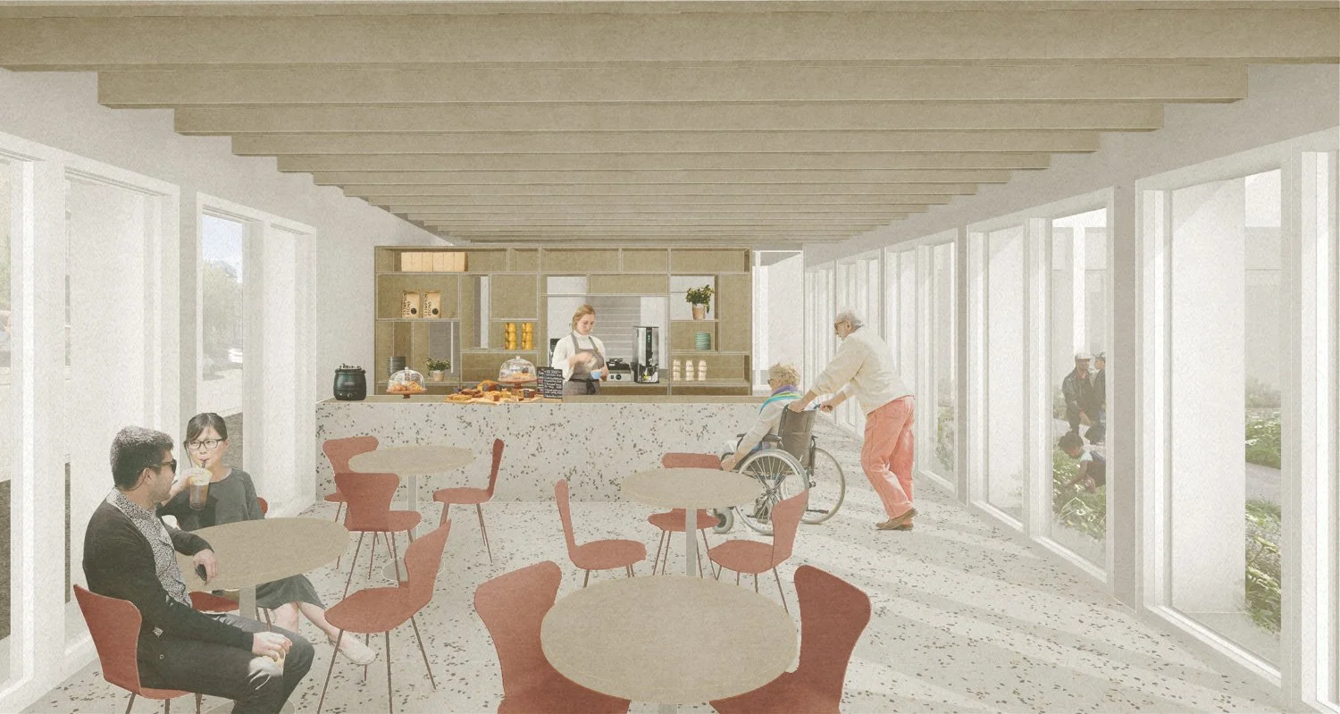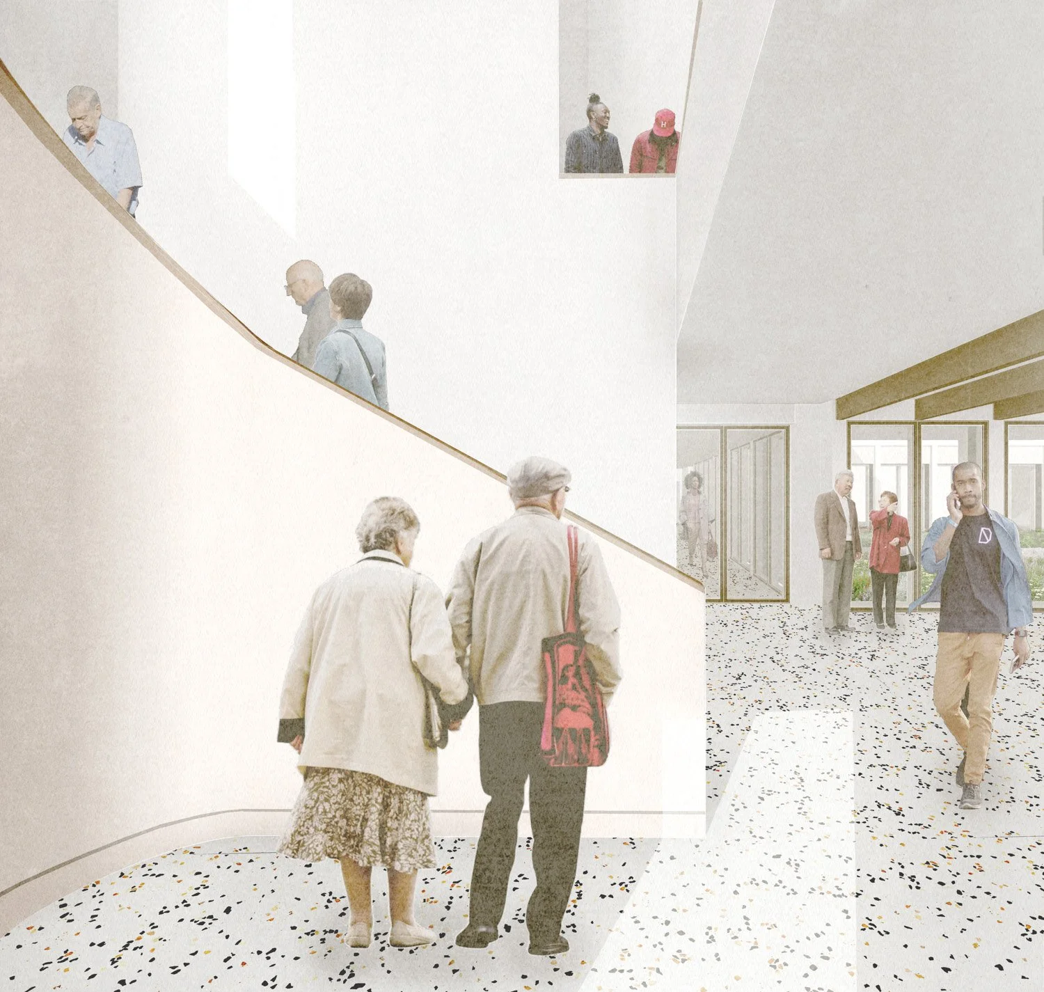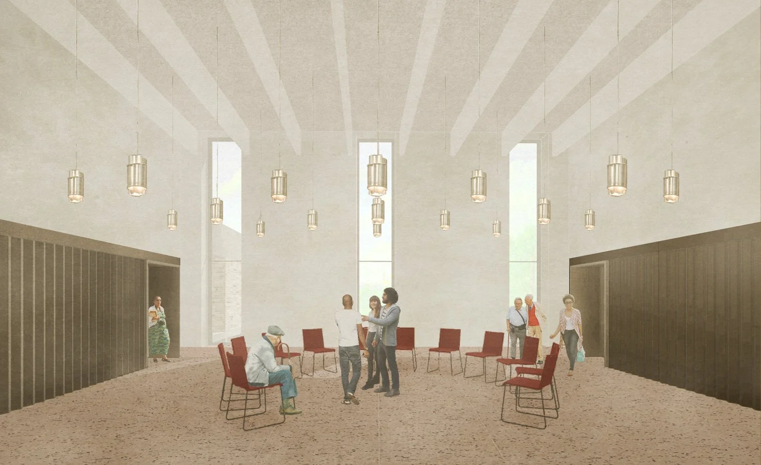 A new church, a new community hall; enlarged and improved facilities for the Zacchaeus Project, café, affordable workspace and other amenities for the local neighbourhood are proposed, built around a central community garden. To satisfy the client’s desire for a carbon-neutral scheme, mass-timber is used to significantly reduce embodied energy, and local sustainable energy production is proposed for its ongoing use. The ground floor colonnade and facades respond to the scale, rhythm and materiality of the 3-4 storey Victorian Terraces that typify the area.