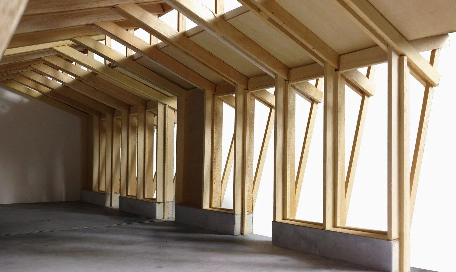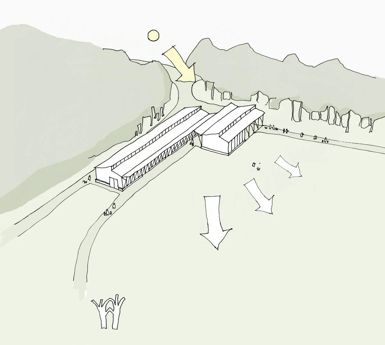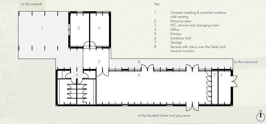 A competition entry for a new visitor centre in Surrey for the Woodland Trust. We proposed two linear, extendable buildings framing a courtyard and commanding views across the site. We devised a simple timber portal frame element that creates a strong rhythm, was designed to be assembled by volunteers, and reflects the local context.